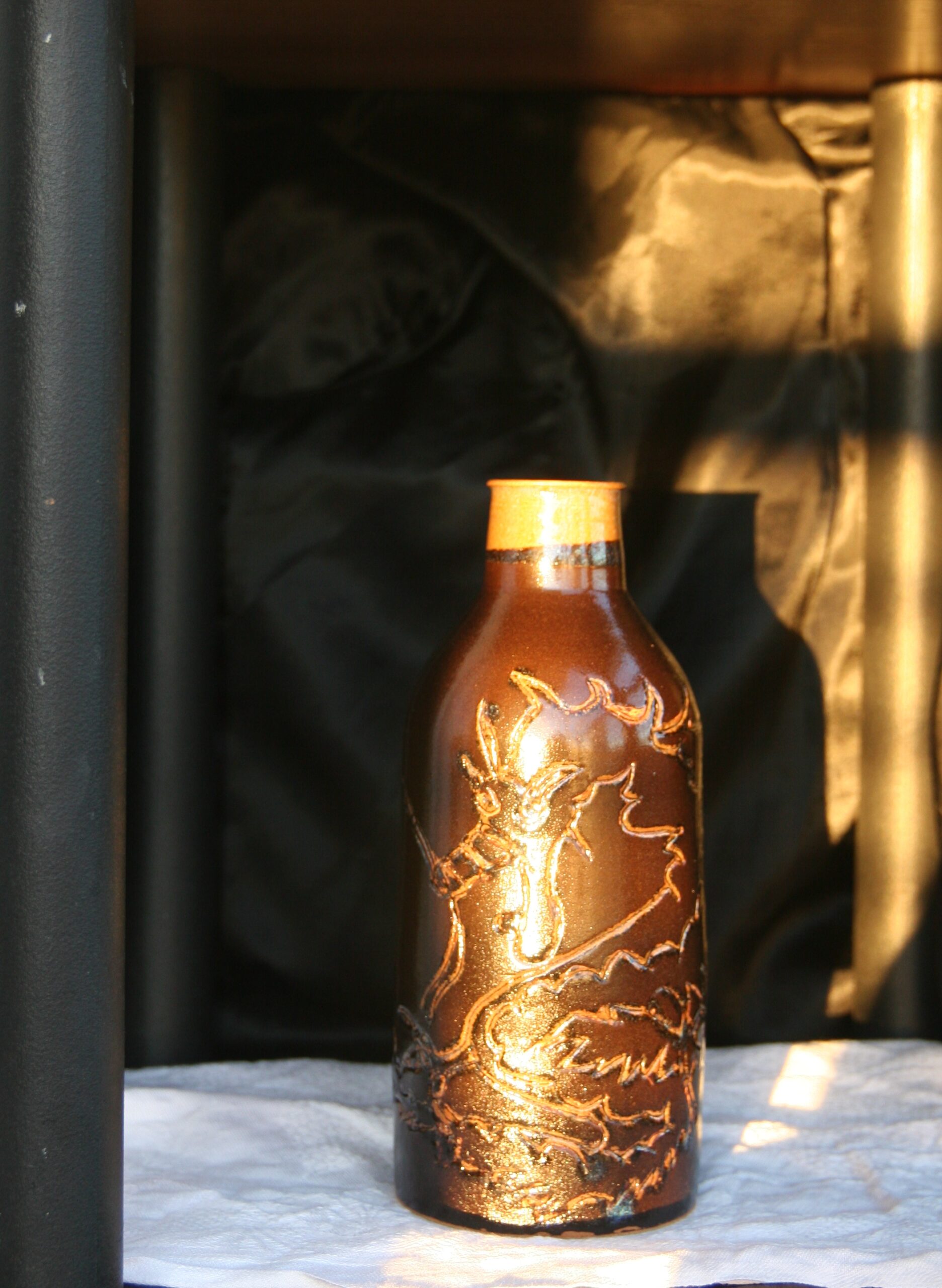 Bouteille « Dragon » en grès roux émaillée, graffitée Grande Bouteille Dragon: Une légende gravée dans la terre. Exotique et chargée de mystère, Envoûtante, … Lire plus