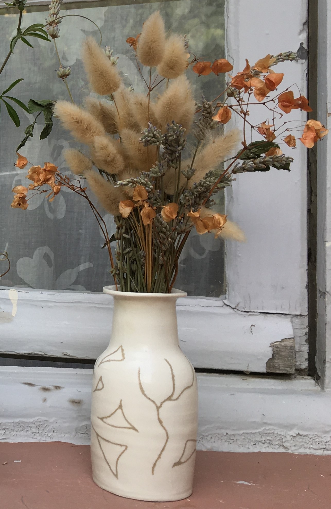 Le vase, élancé, silencieux, dense mais léger, son col ouvert à horizon pour qu’à chaque fleur de saison se renouvelle un heureux dialogue entre le minéral et l’organique.